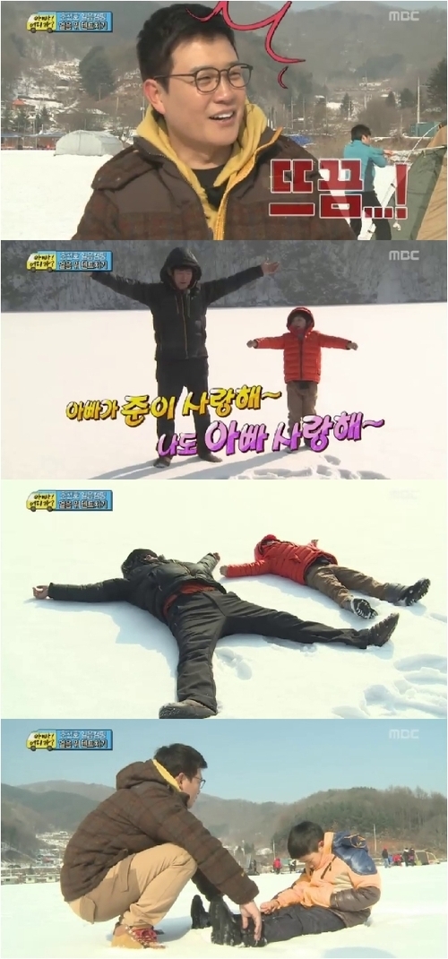 김성주 뿐만 아니라 성동일도 매회 변하고 있다. 무뚝뚝하고 무섭던 아빠 성동일은 아들 성준과 함께 여행을 떠나며 부드러운 아빠로 변신 중. 급기야 이날 성동일은 아들 성준과 눈밭에서 뒹굴며 서로 사랑한다며 닭살애정을 표현했다. 두 사람의 애정표현에 장난기 가득한 이종혁과 이준수 부자는 “그만 보자”고 투덜거릴 정도.