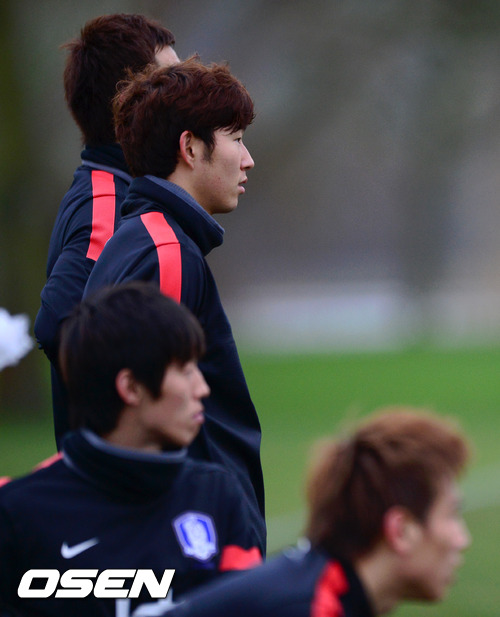 미니게임에서 제외된 해외파 손흥민과 이청용 구자철이 훈련을 지켜보고 있다. /spjj@osen.co.kr