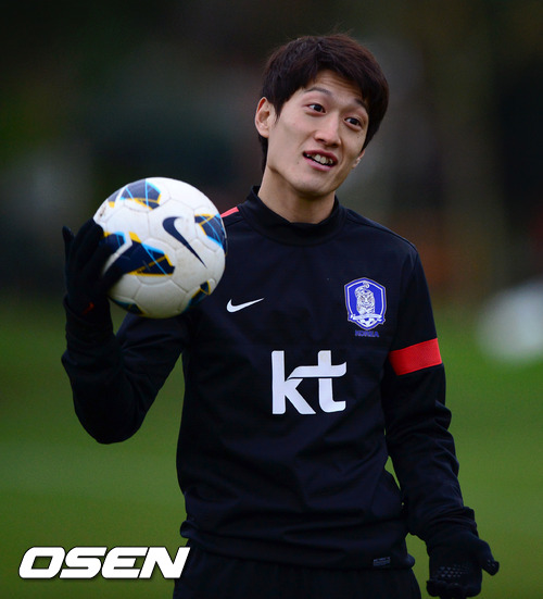 이청용이 패싱게임에서 익살스러운 표정을 짓고 있다. /spjj@osen.co.kr