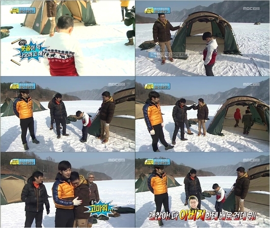 이를테면 지난 3일 방송에서 3번 연속 불편한 곳에서 잠을 자게 된 김성주의 아들 김민국이 끝내 눈물을 보이자 성동일이 나서서 새로운 텐트를 지어주자고 제안을 하는 과정에 감정교류를 알 수 있다.
