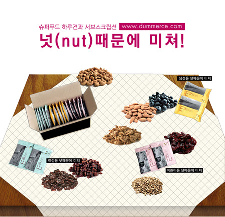 종합 서브스크립션 서비스 덤앤더머스가 견과류를 정기 배송해주는 ‘넛때문에 미쳐’ 서비스를 론칭했다.