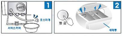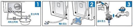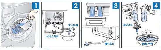 ▲세탁기가 얼었을 때, 50-60정도의 온수를 사용하여 해빙