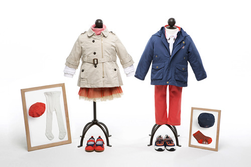 깜찍한 분홍 플레어스커트와 멋스러운 텐셀 소재의 트렌치코트를 매치한 여아용 스타일링, 오렌지컬러의 데님팬츠와 블루 컬러의 사파리 재킷으로 맵시를 살린 남아용 스타일링으로 나누어진다.