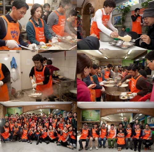 7번방 패밀리는 물론, 용구부녀의 키다리 아저씨로 영화에서 감성연기를 선사한 정진영과 바쁜 드라마 스케줄에도 불구하고 '밥퍼'를 찾은 박신혜, 그리고 어르신들께 "식사 맛있게 하세요"라는 깜찍한 인사로 화기애애한 분위기를 만든 아역 배우 갈소원까지 영화의 출연진과 스탭들이 함께 떡국 나눔 봉사활동에 참여했다.