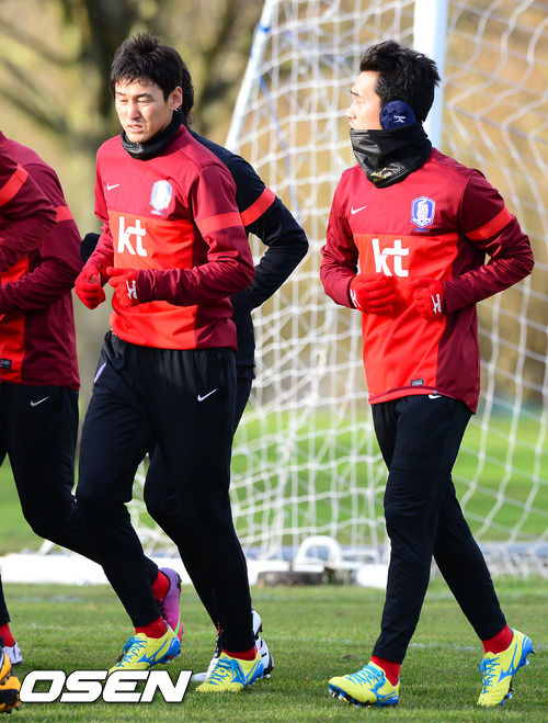 6일 런던 크레이븐 코티지에서 벌어질 크로아티아와 A매치에 출전할 태극전사들이 5일 새벽(한국시간) 말로우 비샴 애비 스포츠센터에서 바람이 강하게 부는 쌀쌀한 날씨에도 불구 강도 높은 훈련을 가졌다.