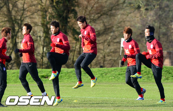6일 런던 크레이븐 코티지에서 벌어질 크로아티아와 A매치에 출전할 태극전사들이 4일 늦은밤(한국시간) 말로우 비샴 애비 스포츠센터에서 바람이 강하게 부는 쌀쌀한 날씨에도 불구 강도 높은 훈련을 가졌다.
