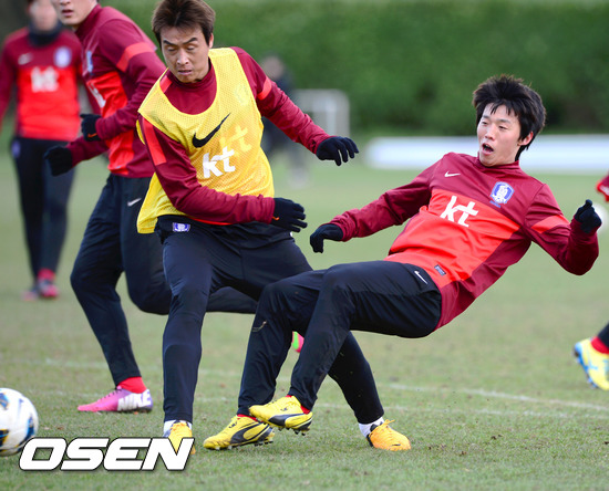 6일 런던 크레이븐 코티지에서 벌어질 크로아티아와 A매치에 출전할 태극전사들이 4일 늦은밤(한국시간) 말로우 비샴 애비 스포츠센터에서 바람이 강하게 부는 쌀쌀한 날씨에도 불구 강도 높은 훈련을 가졌다.