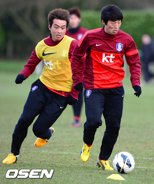 6일 런던 크레이븐 코티지에서 벌어질 크로아티아와 A매치에 출전할 태극전사들이 4일 늦은밤(한국시간) 말로우 비샴 애비 스포츠센터에서 바람이 강하게 부는 쌀쌀한 날씨에도 불구 강도 높은 훈련을 가졌다.