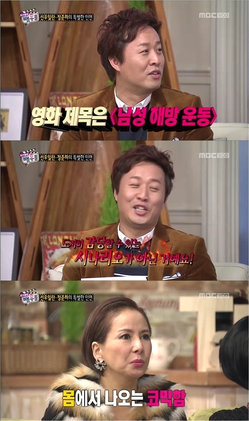 정준하는 “내가 감당할 수 있는 시나리오가 아니었다”고 혀를 내둘렀다. 이어 선우일란은 정준하를 에로영화에 추천한 이유에 대해 “힘을 잘 쓸 것 같았고 몸에서 나오는 코믹스러움이 있었다”고 말했다.