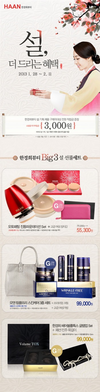 아울러 이벤트 기간 동안 설 선물세트를 구입하는 모든 소비자에게는 적립금 3,000원을 추가 증정한다. 증정된 적립금은 3월 31일까지 사용할 수 있다.