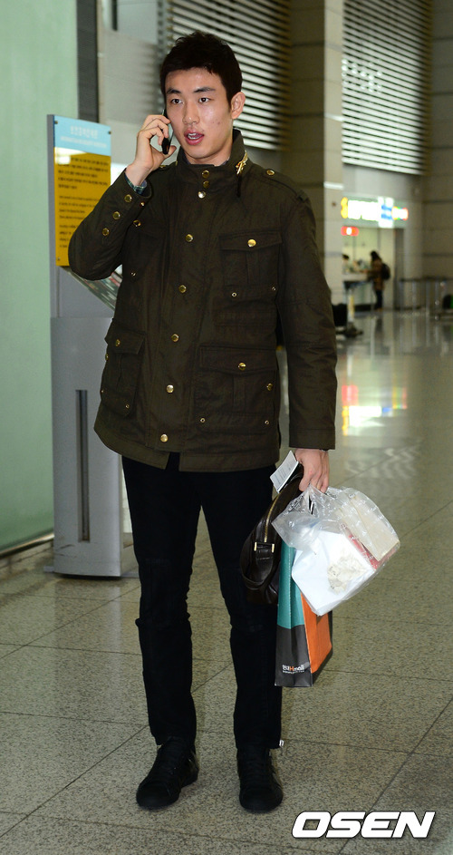 출국에 앞서 윤석영이 지인과 통화를 하고 있다.