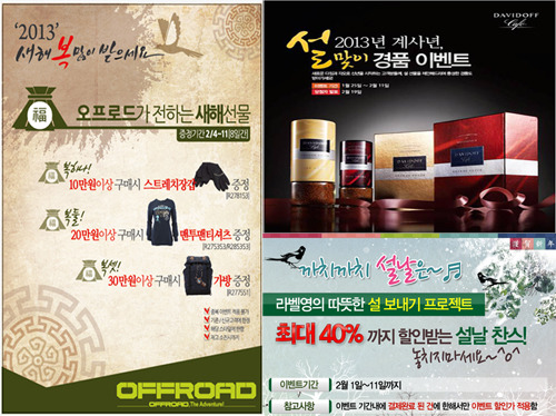 민족 최대의 명절 설을 맞아 각종 분야별 브랜드마다 다양한 이벤트를 진행하고 있다.