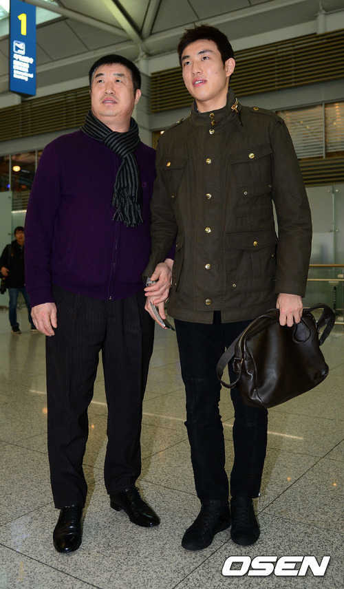 출국에 앞서 윤석영이 아버지 윤남중씨와 기념촬영을 하고 있다.