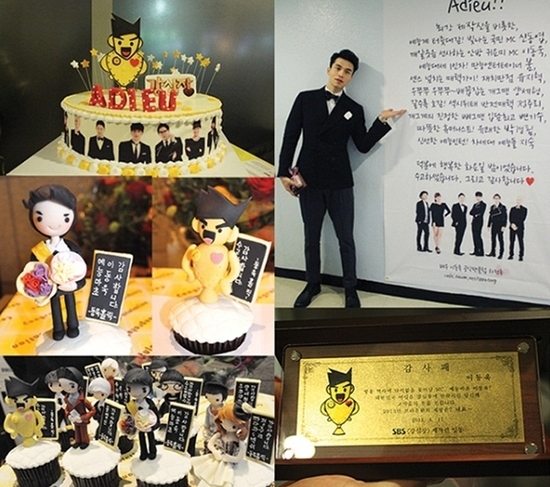 이동욱의 소속사 킹콩엔터테인먼트는 5일 공식홈페이지를 통해 “1년여 동안 ‘강심장’ MC로 맹활약을 펼치며 많은 사랑을 받은 ‘예능 마초’ 배우 이동욱씨의 마지막 녹화 현장! 그동안 수고하신 이동욱씨를 위해 팬 분들께서 아듀 현수막과 귀여운 캐릭터 케이크를, '강심장' 제작진에서는 감사패를 준비해 주셨어요. 마지막까지 깨알 웃음 선사하며 최선을 다한 예능 마초 이동욱씨에게 큰 박수를 보냅니다”라는 글과 함께 사진을 게재했다.