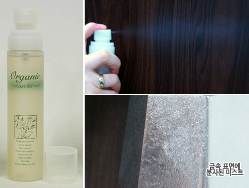 메이크업을 한 후 뿌려보니 오일 입자가 파우더를 잡아줘 수정 메이크업을 하기에 편리했다. 수분 미스트보단 흡수 속도가 느렸으나 손으로 두드려주니 금세 흡수됐다.