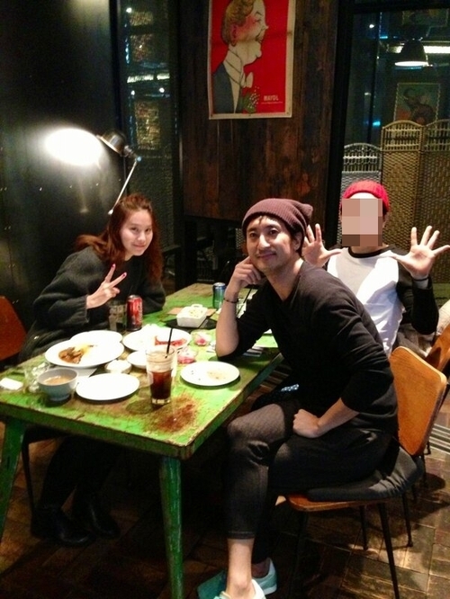 사진 속 신현준은 유인영, 지인으로 보이는 또 다른 일행과 함께 테이블에 앉아 포즈를 취하고 있다. 세 사람의 자연스럽고 화기애애한 분위기가 눈길을 끈다.