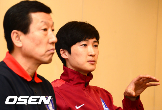 곽태휘가 취재진의 질문에 답하고 있다. /spjj@osen.co.kr