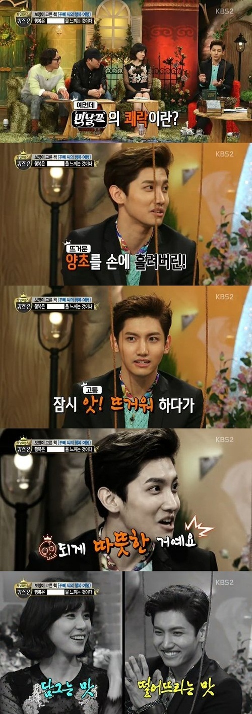 이보영이 최강창민의 말에 "이해한다. 나는 손가락을 촛농에 담그는 걸 좋아한다"며 동의했다. 이에 최강창민은 신이 나서 "열 손가락에 촛농을 떨어뜨리면 좋다"며 "재미있다"고 말해 MC들을 깜짝 놀라게 했다.