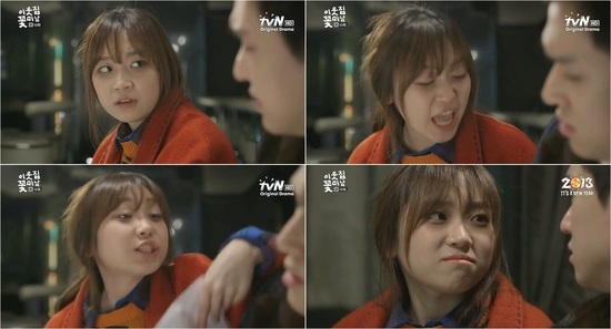 김슬기는 6일 방송된 tvN 월화드라마 '이웃집 꽃미남'에서 차 사고를 낸 유동훈(고경표)을 돕기 위해 나섰다 수리비가 580만 원이라는 말에 격분하는 모습을 연기했다.