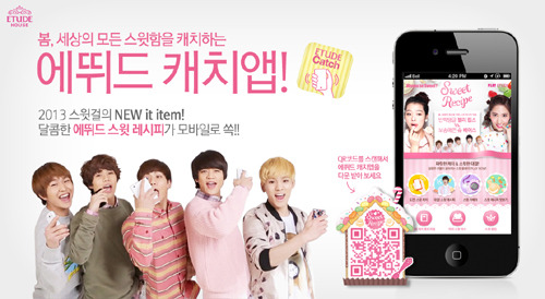 에뛰드하우스(etude)가 2013년 봄 ‘스윗 레시피’ 메이크업 컬렉션을 출시하며, CF영상을 보며 게임을 즐기고, 모델인 샤이니, f(x)의 설리, 크리스탈과 함께 사진을 촬영해 볼 수 있는 ‘에뛰드 캐치앱’ 어플리케이션(어플)을 선보인다.