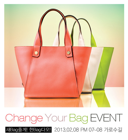 체인지 유어 백 이벤트는 8일, 15일, 22일 총 3회에 걸쳐 진행되며 선착순 3명에게 브랜드와 상관없이 사용하던 헌 백을 브루노말리의 2013년 S/S신상품인 데일리 U백으로 바꿔주는 행사이다.