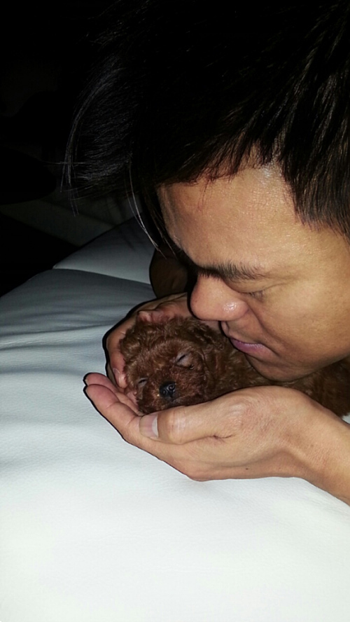 박진영은 지난 5일 오후 자신의 트위터에 “파이가 제 손 안에서 제일 잠이 잘 들어요. 제 손 안에 있으면 맘이 편한가 봐요”라는 글과 함께 사진을 게재했다.