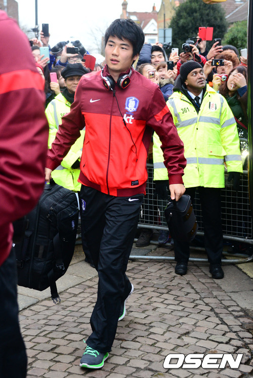 기성용이 교민들의 환호를 받으며 경기장에 들어서고 있다.