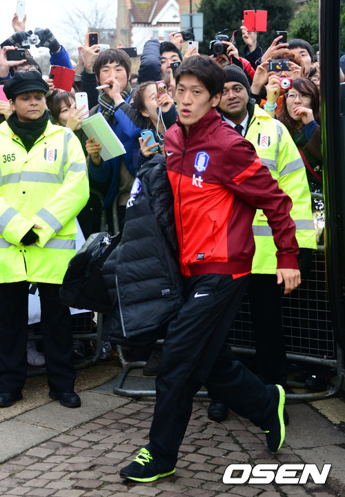 이청용이 교민들의 환호를 받으며 경기장에 들어서고 있다.