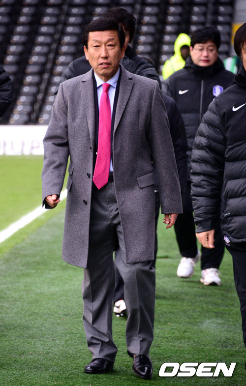 경기에 앞서 한국 최강희 감독이 경기장에 들어서고 있다.
