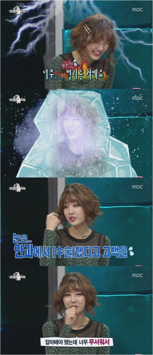 그는 “눈은 눈썹이 찔려서 안과에서 했다”면서 “시력이 떨어져서 하게 됐다”고 말했다. 이어 박은지는 다른 부위는 안했느냐는 질문에 웃음으로 대답을 대신했다.