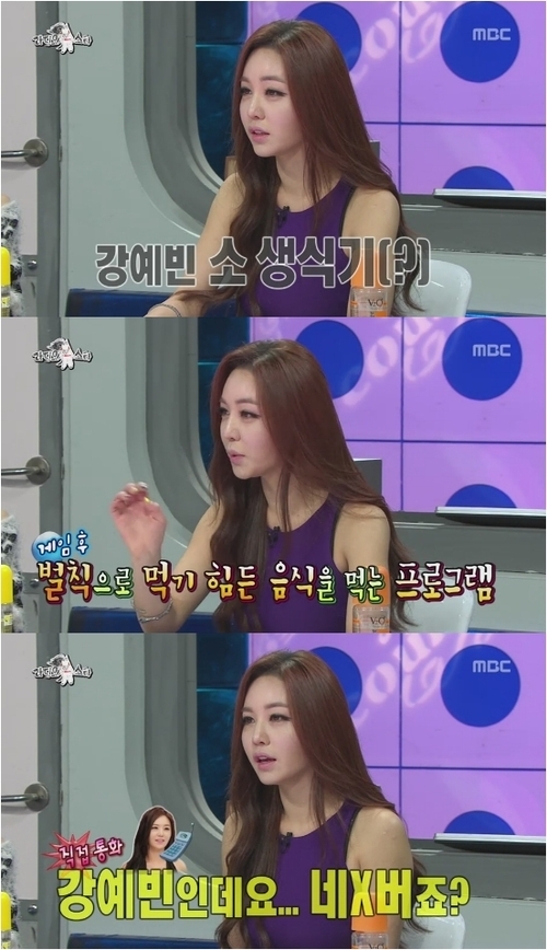 강예빈은 6일 방송된 MBC 예능프로그램 ‘황금어장-라디오스타’에서 출연진과 포털사이트 연관검색어에 대해 이야기를 나누던 중 “내 연관검색어가 더 심하다. 입에 담을 수가 없다”고 말했다.