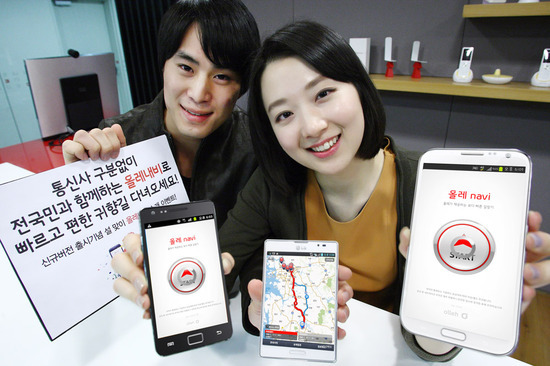 KT가 스마트폰 및 태블릿 전용 네비게이션 앱인 ‘올레내비(olleh navi)’를 이통 3사 전 가입자가 이용할 수 있도록 앱 적용 단말을 대폭 확대하고, 이용자 편의 기능을 새롭게 업그레이드했다고 7일 밝혔다.