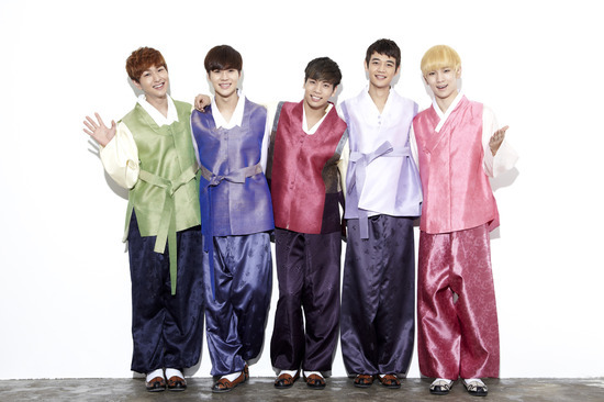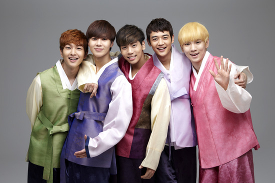 인기그룹 샤이니가 설을 맞아 한복을 곱게 차려 입고 인사를 전했다.