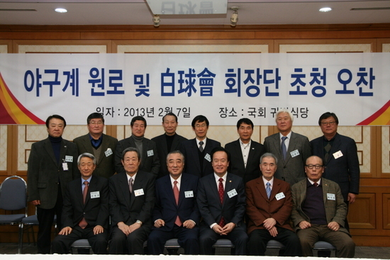 이병석 회장은 7일 오전 12시 국회 귀빈식당에서 백구회(白球會) 신동열 회장과 김병우 부회장 등 임원진을 비롯해 어우홍 전 국가대표 감독 등 야구계 원로 13명을 초청해 오찬을 함께했다.