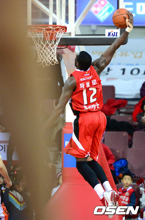 7일 오후 안양실내체육관에서 열린 '2012-2013시즌 KB국민카드 프로농구' 안양 KGC인삼공사와 인천 전자랜드의 경기, 3쿼터 KGC 파틸로가 강력한 원핸드 덩크슛을 시도하고 있다.