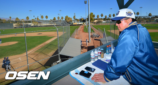 NC 김경문 감독이 자체 청백전 경기를 지켜보고 있다