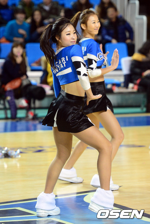 8일 오후 전주 실내체육관에서 열린 'KB 국민카드 2012-2013 프로농구' 전주 KCC와 창원 LG의 경기 시작 전 치어리더들이 공연을 펼치고 있다.