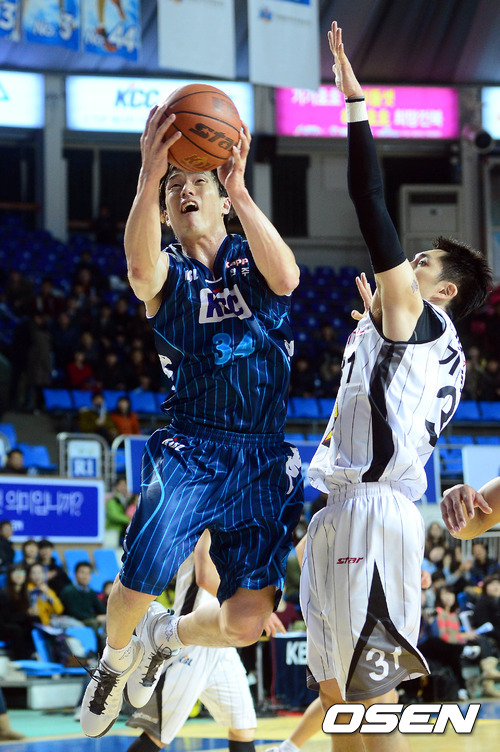 8일 오후 전주 실내체육관에서 열린 'KB 국민카드 2012-2013 프로농구' 전주 KCC와 창원 LG의 경기 1쿼터 김효범이 기승호를 앞에두고 슛을 시도하고있다.