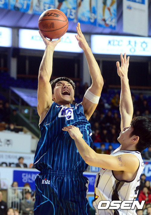 8일 오후 전주 실내체육관에서 열린 'KB 국민카드 2012-2013 프로농구' 전주 KCC와 창원 LG의 경기 1쿼터 노승준이 골밑슛을 시도하고 있다.