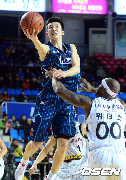 8일 오후 전주 실내체육관에서 열린 'KB 국민카드 2012-2013 프로농구' 전주 KCC와 창원 LG의 경기 2쿼터 강병현이 위더스를 앞에두고 슛을 시도하고 있다.