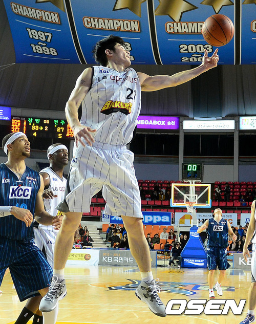 8일 오후 전주 실내체육관에서 열린 'KB 국민카드 2012-2013 프로농구' 전주 KCC와 창원 LG의 경기 2쿼터 박진수가 리바운드볼을 잡고 있다.