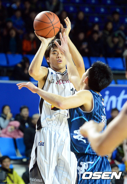 8일 오후 전주 실내체육관에서 열린 'KB 국민카드 2012-2013 프로농구' 전주 KCC와 창원 LG의 경기 3쿼터 박래훈이 미들슛을 시도하고 있다.