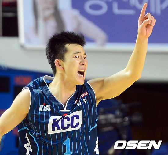 8일 오후 전주 실내체육관에서 열린 'KB 국민카드 2012-2013 프로농구' 전주 KCC와 창원 LG의 경기 4쿼터 강병현이 동료들에게 지시를 하고 있다.