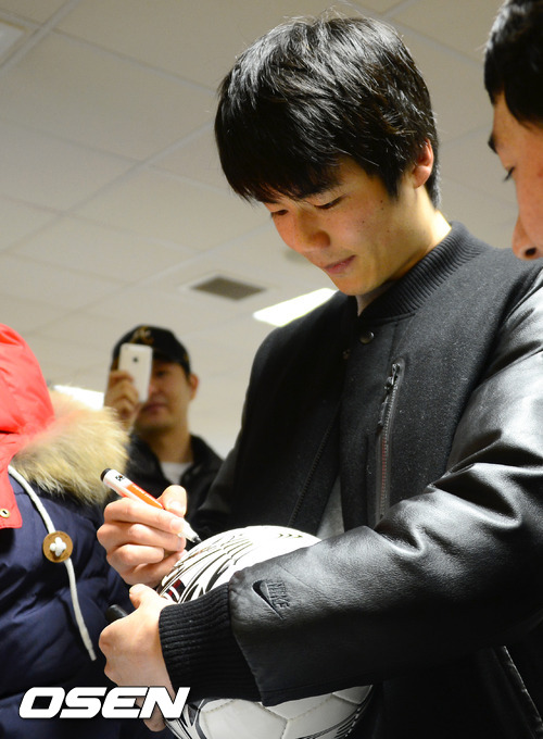 경기를 하루 앞둔 8일 오후(한국시간)스완지의 기성용이 경기장을 찾은 팬에게 정성스레 사인을 해주고 있다./ spjj@osen.co.kr