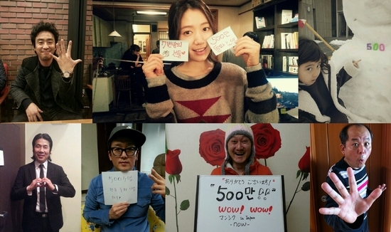 사진 속 배우들은 각각 자신만의 개성이 담긴 포즈로 사진을 찍었다. 류승룡과 김기천은 다섯 손가락을 펴 500만을 표시하는 포즈로, 박신혜와 김정태, 정만식은 종이 등에 500만을 기념한 글을 적어서 들고 있는 모습으로 오달수는 하트로 관객들을 향한 애정을 표시했고, 갈소원은 아역배우 답게 앙증맞은 모습으로 눈사람에 '500'이라는 숫자를 표시한 후 사진을 찍었다.