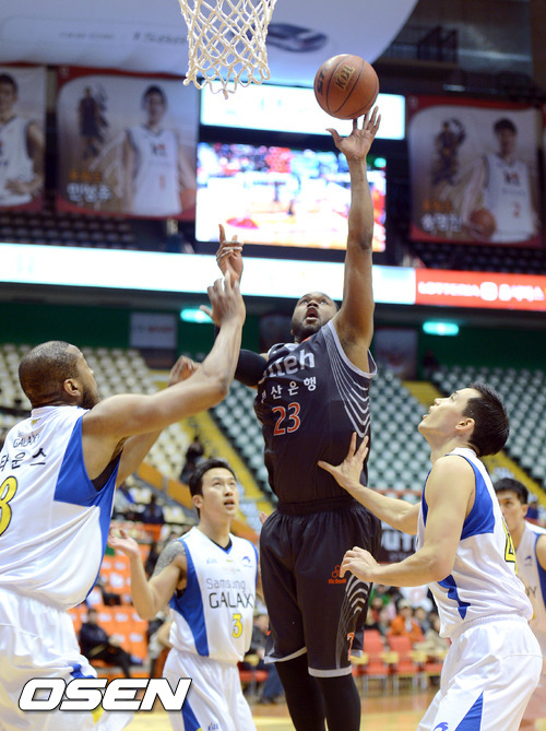 9일 오후 부산 사직실내체육관에서 열린 'KB 국민카드 2012-2013 프로농구' 부산KT와 서울 삼성의 경기, 1쿼터 존슨이 레이업슛을 하고 있다.