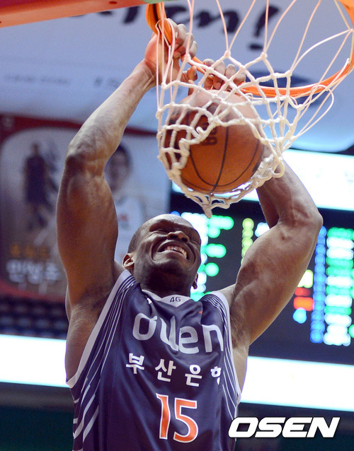 9일 오후 부산 사직실내체육관에서 열린 'KB 국민카드 2012-2013 프로농구' 부산KT와 서울 삼성의 경기, 3쿼터 KT 라이트가 덩크슛을 시도 하고 있다.