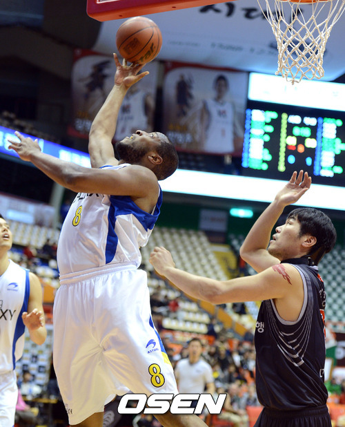9일 오후 부산 사직실내체육관에서 열린 'KB 국민카드 2012-2013 프로농구' 부산KT와 서울 삼성의 경기, 3쿼터 삼성 타운스가 레이업슛을 시도하고 있다.