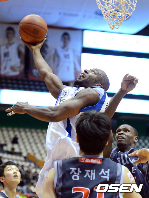 9일 오후 부산 사직실내체육관에서 열린 'KB 국민카드 2012-2013 프로농구' 부산KT와 서울 삼성의 경기, 4쿼터 삼성 블랭슨이 레이업슛을 하고 있다.