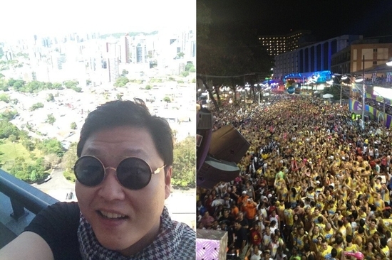 사진 속에는 싸이의 공연을 보러 온 듯 거리를 꽉 메운 사람들이 축제를 즐기고 있다. 뜨거운 에너지를 가진 삼바의 나라와 열정적인 싸이의 의외의 조합이 어울림을 보이는 모습이다.